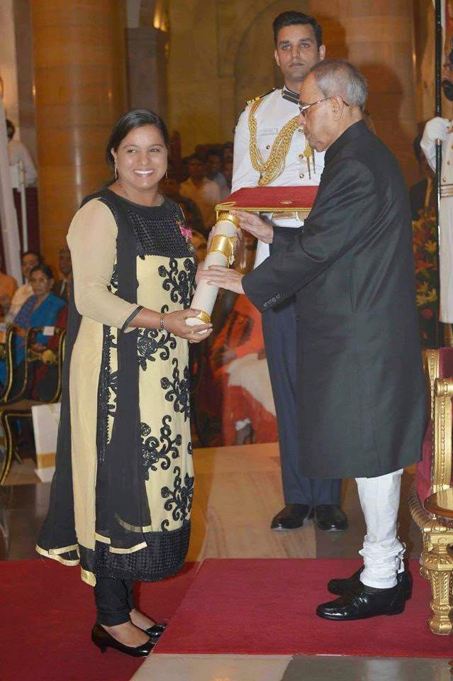 Former Indian captain Saba Anjum who was one of the most prominent forwards and represented India during the Asian Games in 2002, Asia Cup in 2004, Commonwealth Games in 2002 and 2006, and Junior World Cup in 2001 today received one of the most prestegious award Padma Shri from Indian president Saba has to her credit of being a part of the team which won the bronze at 2006 Doha Asian Games. Saba Anjum earlier has received Arjuna award in year 2013.