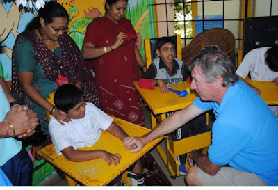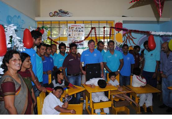 Taking a break from the daily hockey training, several members of our senior national hockey team visited the Spastic Society of Karnataka’s unit in Bangalore on 16th December 2011.
